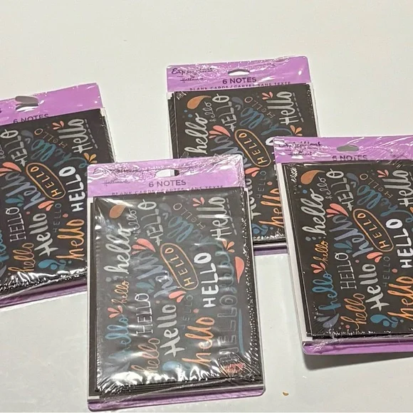 Set of note cards with colorful 'Hello' design. Includes multiple packs. Blank inside, unopened, willing to separate upon request