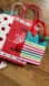 Set of colorful holiday-themed gift bags. Includes various designs with festive patterns.