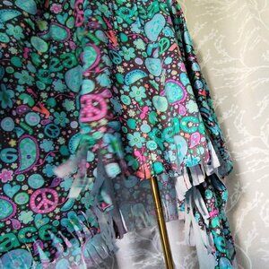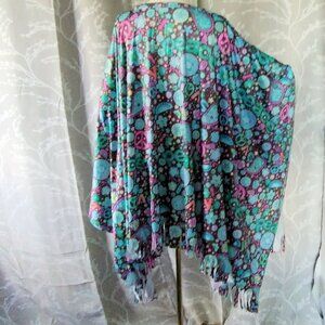 rainbow tie dye printed fringed cloak.