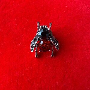Set of vibrant insect brooches. Features red, black, gold, and silver tones. Perfect for adding flair to any outfit.