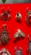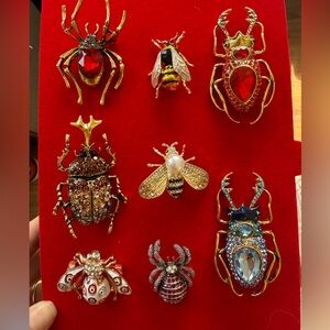 Set of vibrant insect-themed brooches. Features red, gold, black, and blue accents. Perfect for adding a unique touch to any outfit.
