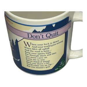 This colorful ceramic coffee mug features a beautiful sunset and sunrise design with the inspirational message "Don't Quit". It is perfect for any occasion and makes a great addition to any mug collection. The round-shaped mug is dishwasher and microwave safe, and its multicolor design adds a decorative touch to your kitchen.