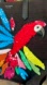 This canvas tote bag features a colorful, sequin-embellished parrot design on the front. The bag is made of durable black canvas and features a vibrant parrot design created with sequins, paillettes, and beads.