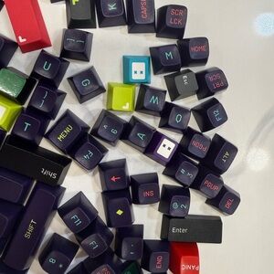 Vibrant keycaps set with various colors. Perfect for customizing your keyboard.105 keys