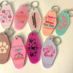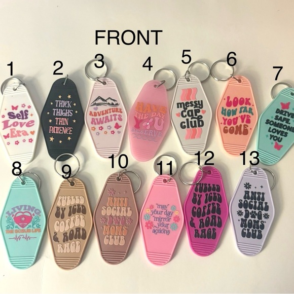 colorful keychains featuring fun quotes. Perfect for adding personality to your keys.