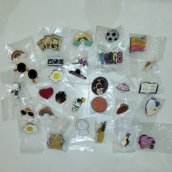 Brighten up any outfit with this colorful set of kids accessory pins. Perfect for adding a playful touch. Set of 30 pins.
