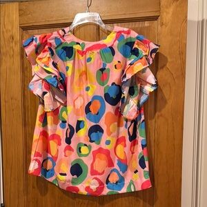 Bright and playful kids top with ruffle sleeves, perfect for adding a splash of color to any outfit.