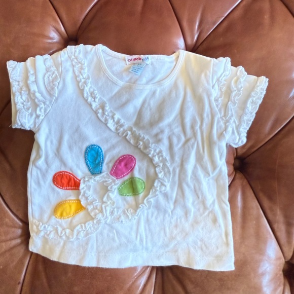 Brighten up your child's wardrobe with this adorable ruffle t-shirt. Featuring vibrant colors and a playful design, it's perfect for any occasion.
