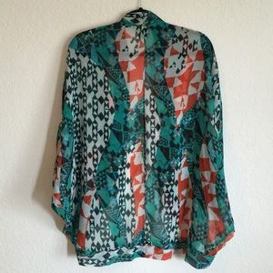 PRICE DROP!! Beautiful light weight kimono! Perfect for summer weather! Bold print will spice up any outfit! Maybe worn twice and in impeccable condition. Size small but will easily fit a large! (Original PM price $49)