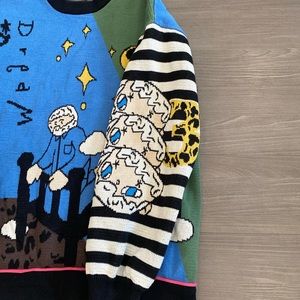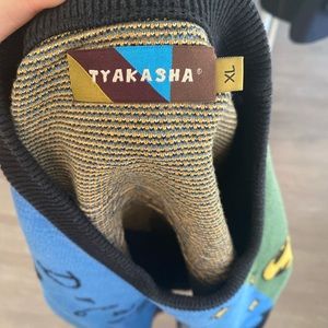 From Japanese brand Tyakasha, in women’s xl. Super unique sweater with funky prints all over. Retails for 100$ plus very expensive shipping. (UO listed for exposure!!!)