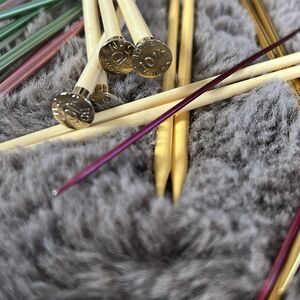 12 pairs of vintage knitting needles. Size 0 up to 13. Some singles will be included as well. Make pairs at home with your singles.