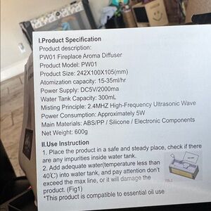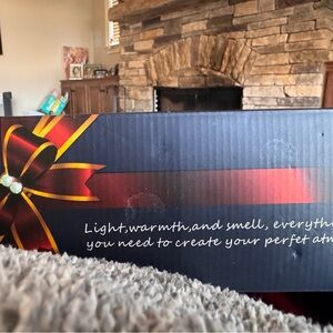LED fireplace box with a colorful flame design. Ideal for creating a warm ambiance. Comes with 3 Essential Oils- Tea Tree, Sweet Orange, Lavender