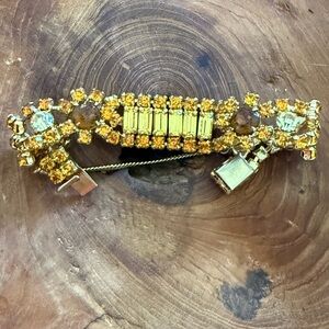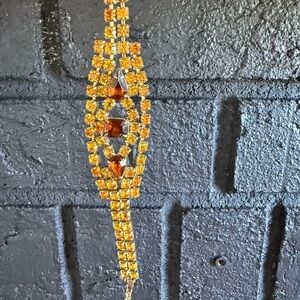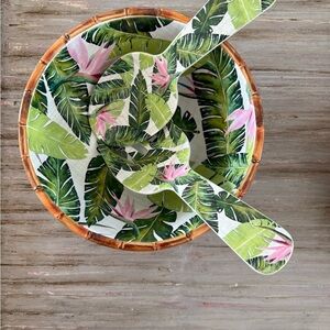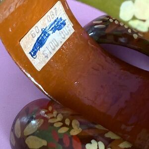 Vibrant bangle set with a leaf pattern. Features shades of green, red, and yellow.
