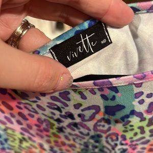 Beautiful bright leopard print top that gives all the Lisa Frank vibes. Buttery soft material and super stretchy.