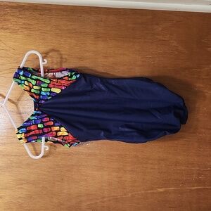 Chic blue leotard with vibrant accents. Excellent condition.