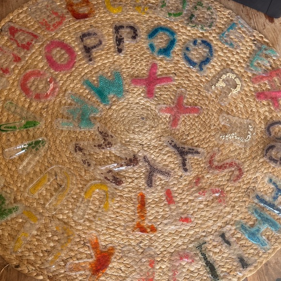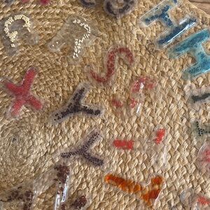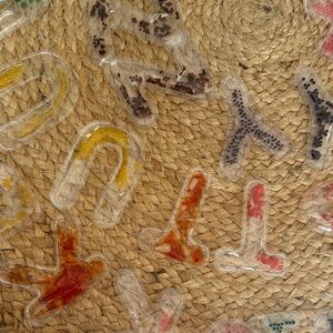 Plastic letters with beads or liquid inside. 2 sets (one J missing) selling as it is