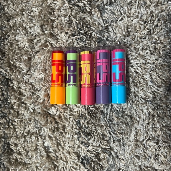 Set of five vibrant lip balms in assorted colors. Perfect for adding a pop of color to your routine. Never used👍🏼