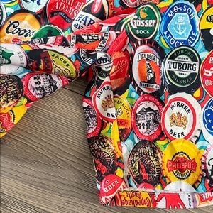Dive into style with these colorful swim trunks featuring a unique logo pattern. Perfect for any beach or pool day.