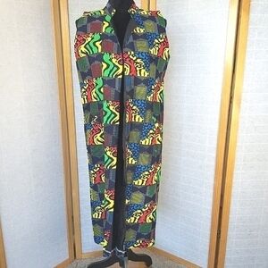 Colorful Long Line Vest Jacket Open Front Size Small Artsy Unique