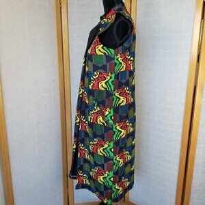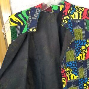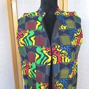 Colorful Print Ankara Style Sleeveless Jacket Open Front Pockets Small