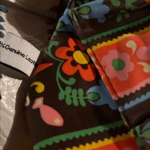 Vibrant crossbody bag with floral patterns. Features a Loop logo on the front. Perfect for adding a pop of color to any outfit. Pre loved. Calls out’s unraveling on strap and bottom stitching came from blur flower. Leather possibly has marks.