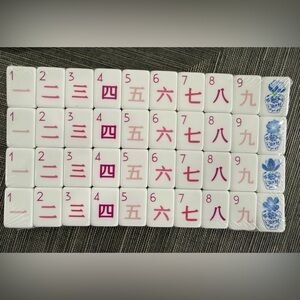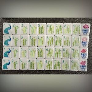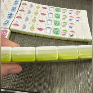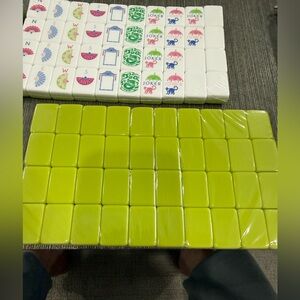 Brand new engraved mahjong tiles still in wrapping. Retails for $400. Does not include pushers, dice or mat. Bought by accident and not returnable.