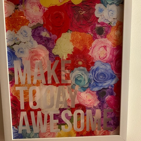 Colorful “Make Today Awesome” glass encased white Framed floral graphic Wall Art