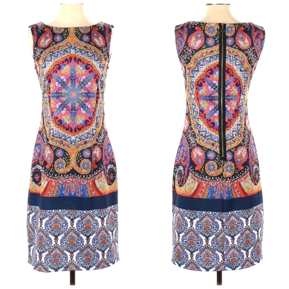 Take your look from desk-to-dinner with ease! Featuring a flattering, tailored fit + colorful baroque mosaic patterns, this dress has it all! EUC.