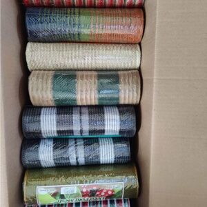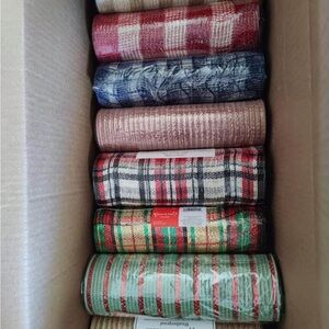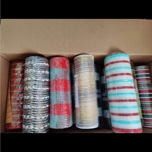 Lot of 90 brand new unused mesh ribbon rolls. These were bought for wreath making. Large majority of Christmas colors and designs.