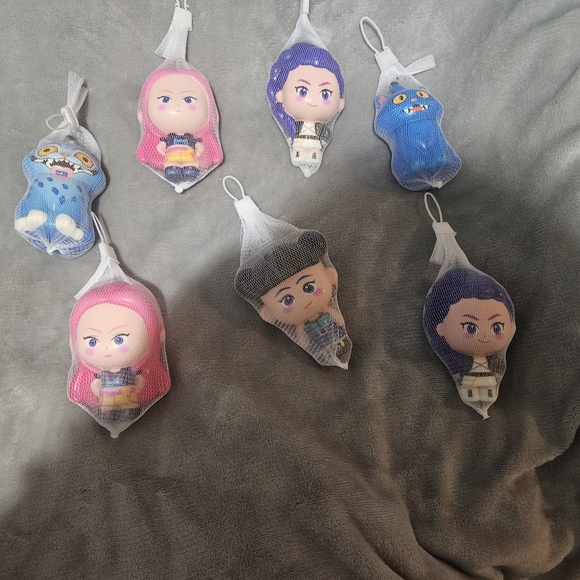 Discover a vibrant set of mesh-wrapped figurines in pink, purple, and blue. Perfect for adding a playful touch to any space.