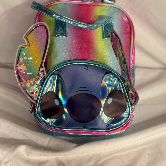 Vibrant backpack featuring Stitch with rainbow colors. Perfect for fans.