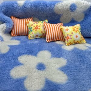 This lot of 4 miniature dollhouse decorative throw pillows is perfect for any bedroom setting. Handmade with fabric material, these artist-made pillows come in multicolor designs suitable for a 1:12 scale dollhouse. Original and not vintage, these pillows are sure to add a unique touch to your dollhouse decor. Made in the 2020s, this set of dollhouse pillows is a charming addition to any miniature collection.