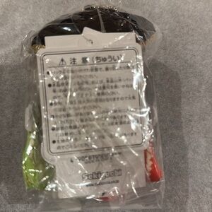Adorable doll keychain dressed in a vibrant kimono. Features a mix of red, green, and black colors.