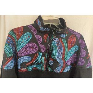 Colorful Mosaic Pattern Quarter Zip Pullover Sweatshirt 90s Athletic Casual Top. Small. This item is preowned and in good condition with no rips, holes or stains. There is some piling. Approx measurements are: