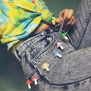Mushroom Resin Waist Chain Pants Pocket Chain Pants Chain Women Jeans Pants Belt Chain Jeans Pants Chain Double Layer Accessories Acrylic Resin
