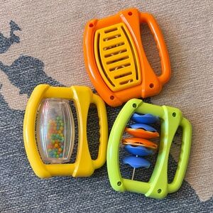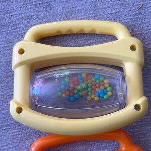 Engage your little one with this vibrant musical rattle set. Featuring yellow, orange, and green colors, these rattles are perfect for sensory play. Ideal for developing motor skills and auditory senses.