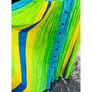 Colorful Naqui Button-Front Maxi Dress M 100% Cotton Boho Pleated Babydoll Artsy