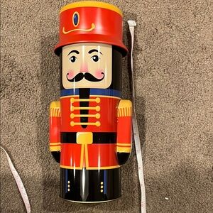 Delight your child with this vibrant toy soldier, featuring a classic design in red, black, and yellow. Perfect for holiday decor. Tin soldier was a container for Tootsie Rolls a few years ago. This has only been used as a display. Excellent condition.