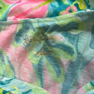 Vibrant one-shoulder romper with a playful pattern. Features shades of pink, green, and blue. $45 each or both for $80. Worn once for Easter. Excellent condition. One girls Small-4/5 and Medium 6-7