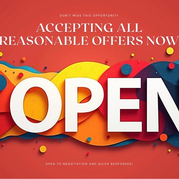 Vibrant poster with 'Open' text. Features a colorful design with red, orange, and blue accents.