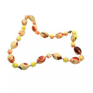 Colorful Orange & Yellow Swirl Painted Bead Necklace