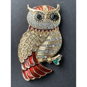 Colorful Owl MAGNET Gold-Toned & Red Enamel Rhinestones Black Jeweled Eyes