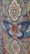 Vibrant long sleeve dress with a paisley pattern. Features a mix of red, blue, and cream colors.