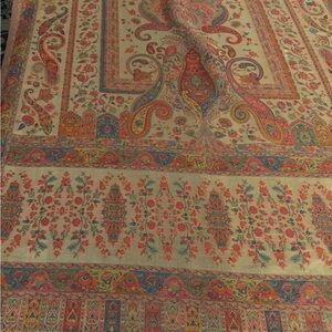 Vibrant rug featuring intricate paisley and floral designs. Rich colors add elegance to any space.