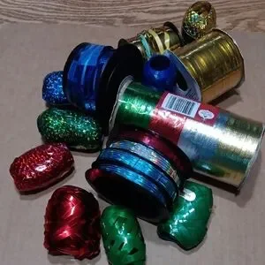 Enhance your celebrations with this vibrant party ribbon set. Featuring a mix of red, blue, green, blues,and gold ribbons, this collection is perfect for any festive occasion. 2 bn large thin metallic ribbon and 8 small rolls great ribbon for holidays