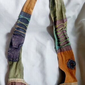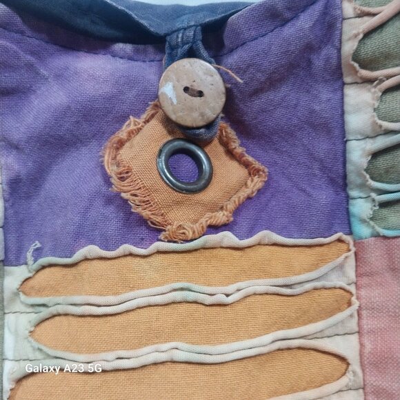 Colorful Patchwork Boho Hippie Shoulder Bag With Button Accents & Zipper Closure