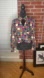Vibrant patchwork button-up shirt with a mix of geometric patterns. Features a blend of purple, blue, brown, and cream colors.