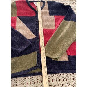 Colorful Patchwork Christopher & Banks XL Cardigan Women’s Sweater Red, Blue, Gr