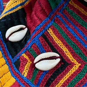 Vibrant and unique, this colorful patchwork drawstring bag is perfect for adding a pop of color to any outfit. Featuring a mix of red, blue, yellow, and black, this bag is both stylish and functional. She’ll décore