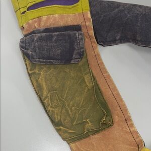 Embrace a vibrant style with this colorful patchwork hobo bag. Featuring a mix of yellow, purple, and natural color hues, this bag is perfect for adding a pop of color to any outfit. Ideal for casual outings. Great outer pocket for your cell or cash. Main zipper compartment and one internal zipper pocket. In great condition. Freshly washed and air dried. Smoke and pet free home.